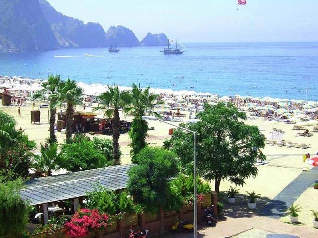 Oblíbená Kleopatřina písčitá pláž s pozvolným vstupem do moře cca 50 m od hotelu. Cesta na pláž přes místní komunikaci. Lehátka a slunečníky za poplatek. Bar na pláži za poplatek. |